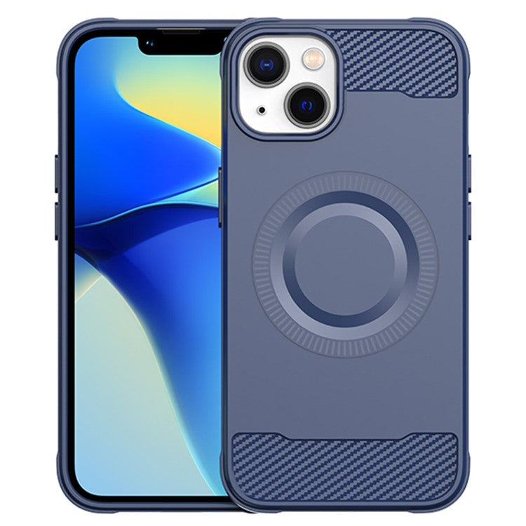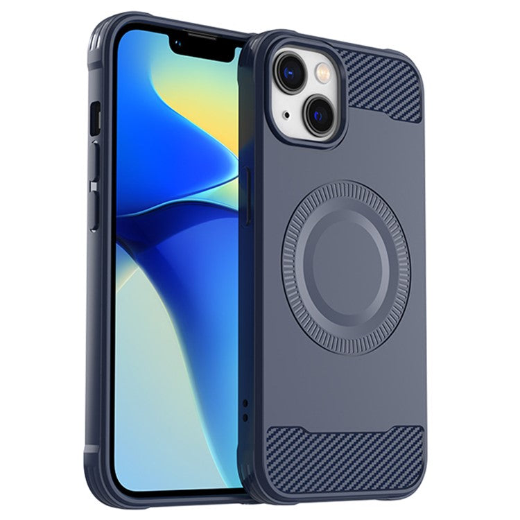 For iPhone 13 Case Carbon Fiber Texture TPU Phone Case Compatible with MagSafe - Blue