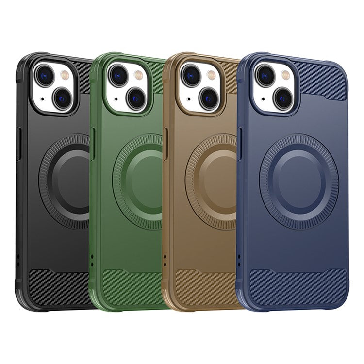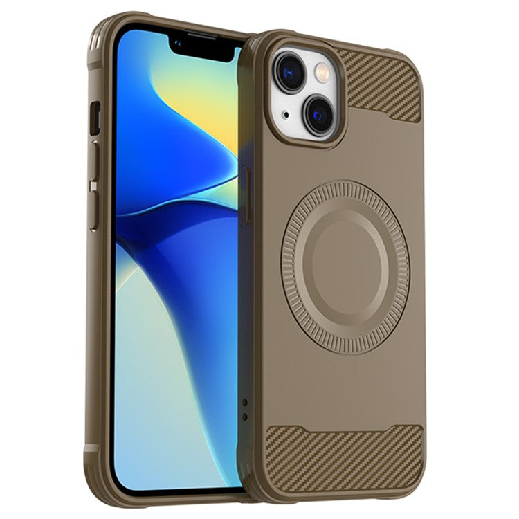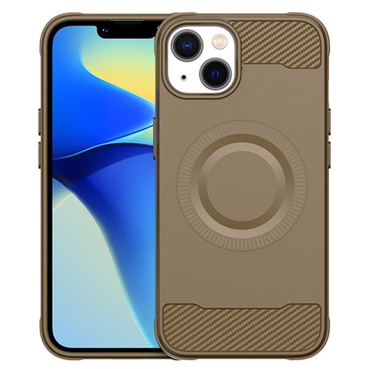 For iPhone 13 Case Carbon Fiber Texture TPU Phone Case Compatible with MagSafe - Brown