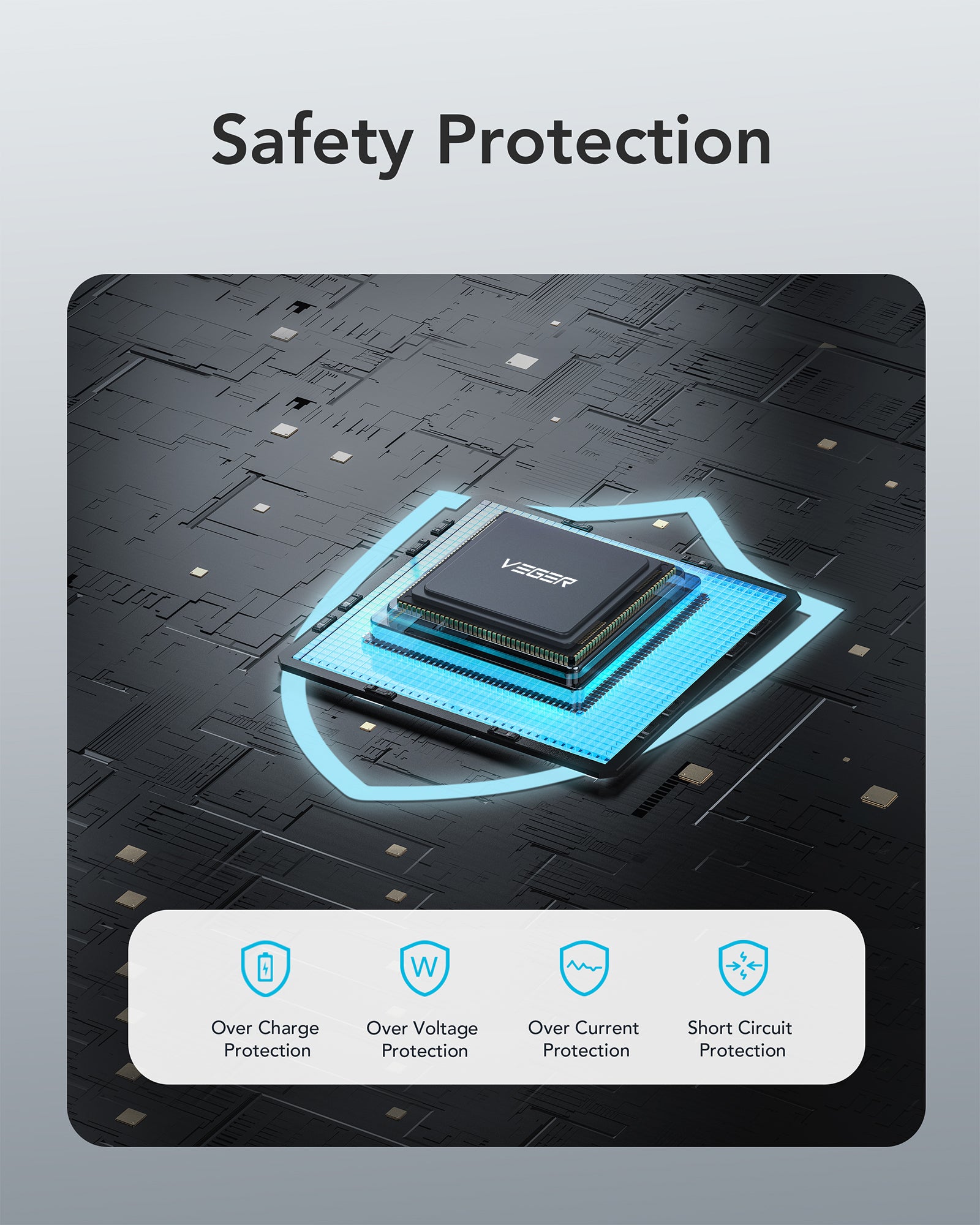 VEGER L30. Batterikapacitet: 30000 mAh, Batteriteknologi: Lithium polymer (LiPo). USB A udgangsporte: 3, Antal USB type-C-porte: 1. Total udgangseffekt: 20 W, Udgangsstrøm: 2,2 A. Produktfarve: Sort