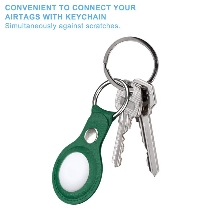 PU Leather Protective Case with Metal Key Ring for Apple AirTag - Green