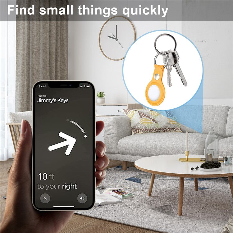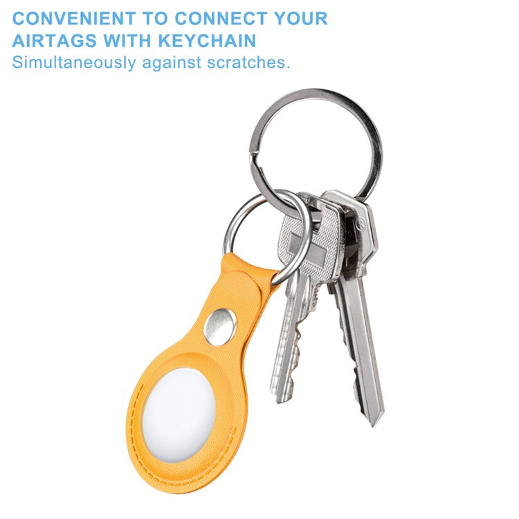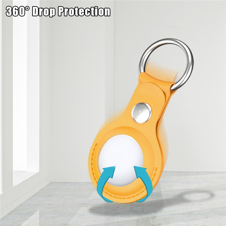 PU Leather Protective Case with Metal Key Ring for Apple AirTag - Yellow