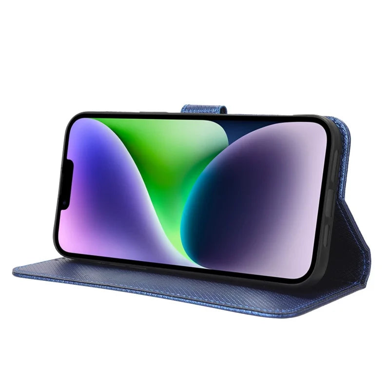 For iPhone 14 Max 6.7 inch Full Protection Diamond Texture Wallet Leather Case Stand Shockproof Phone Cover with Magnetic Clasp - Blue