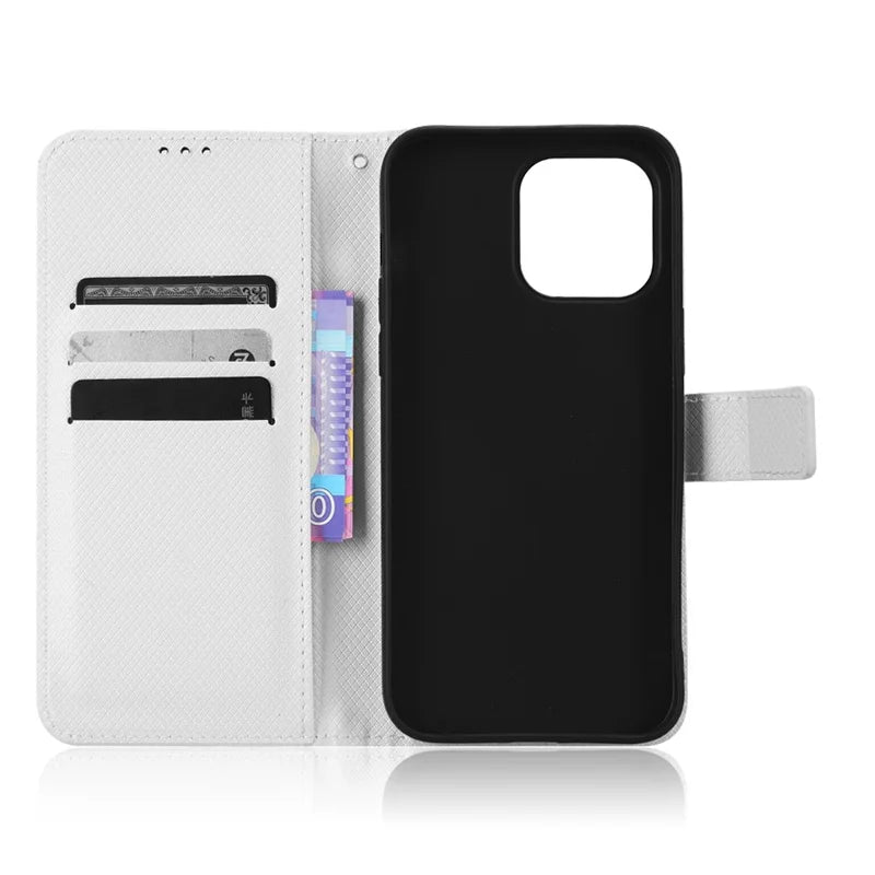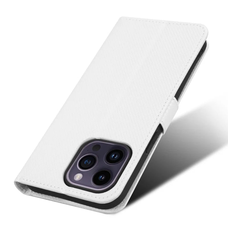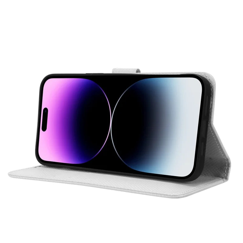For iPhone 14 Pro Max 6.7 inch Diamond Texture Stand Wallet Leather Case Shockproof Phone Cover with Magnetic Clasp - White