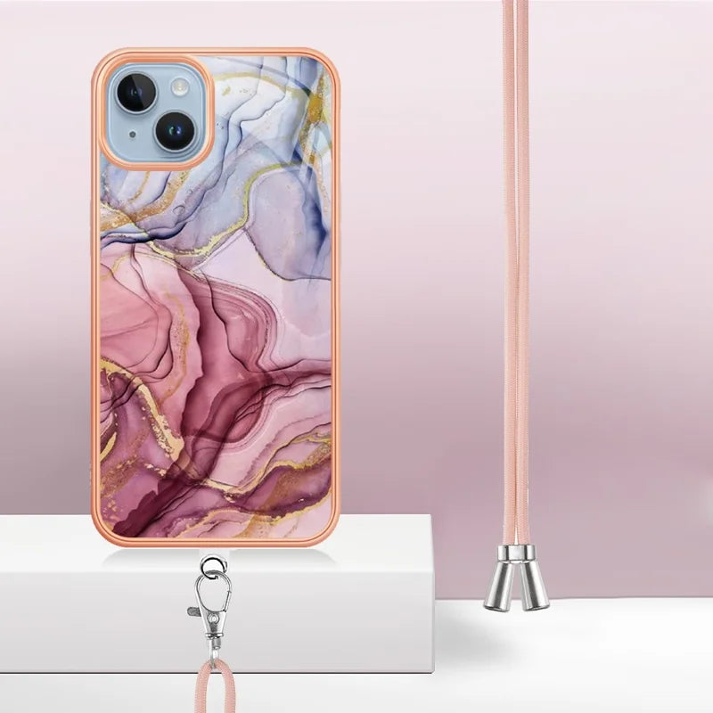 iPhone 15, marmor, halssnor, rosegold