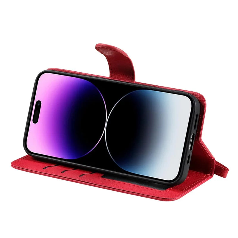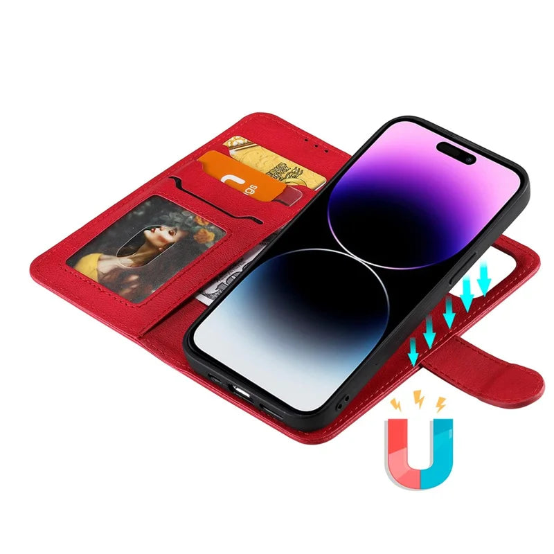 For iPhone 14 Pro Max Case 2 in 1 Detachable Magnetic Leather Wallet Mobile Cover with Strap - Red